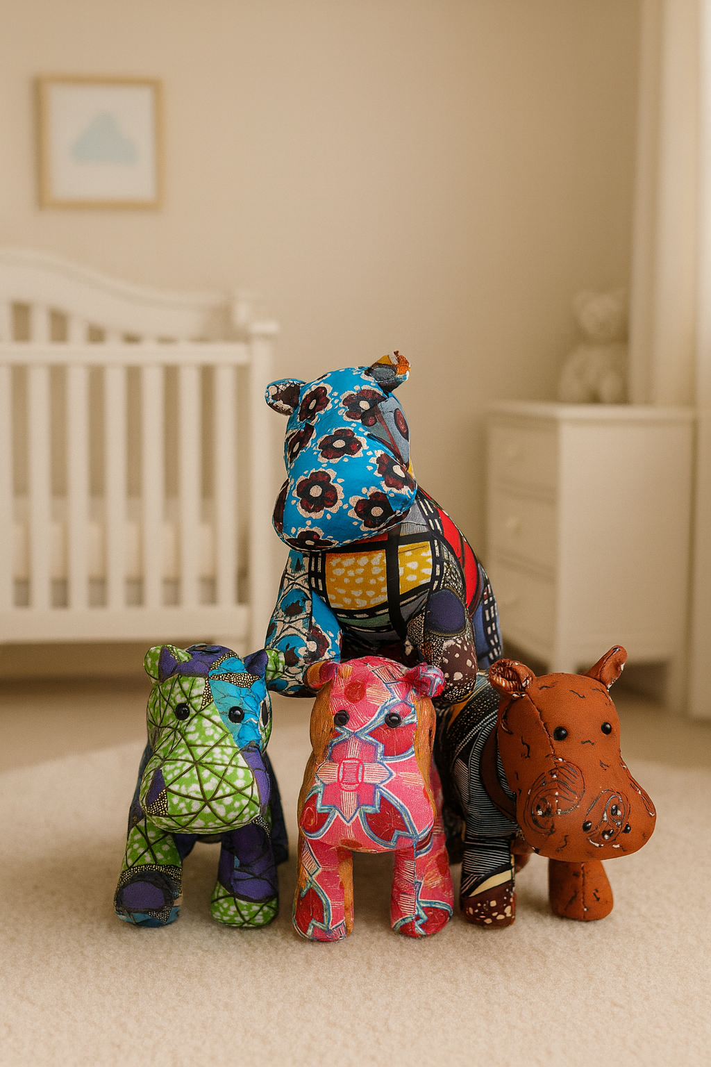AfriBloom Plush Hippo — Handmade Wax Toy