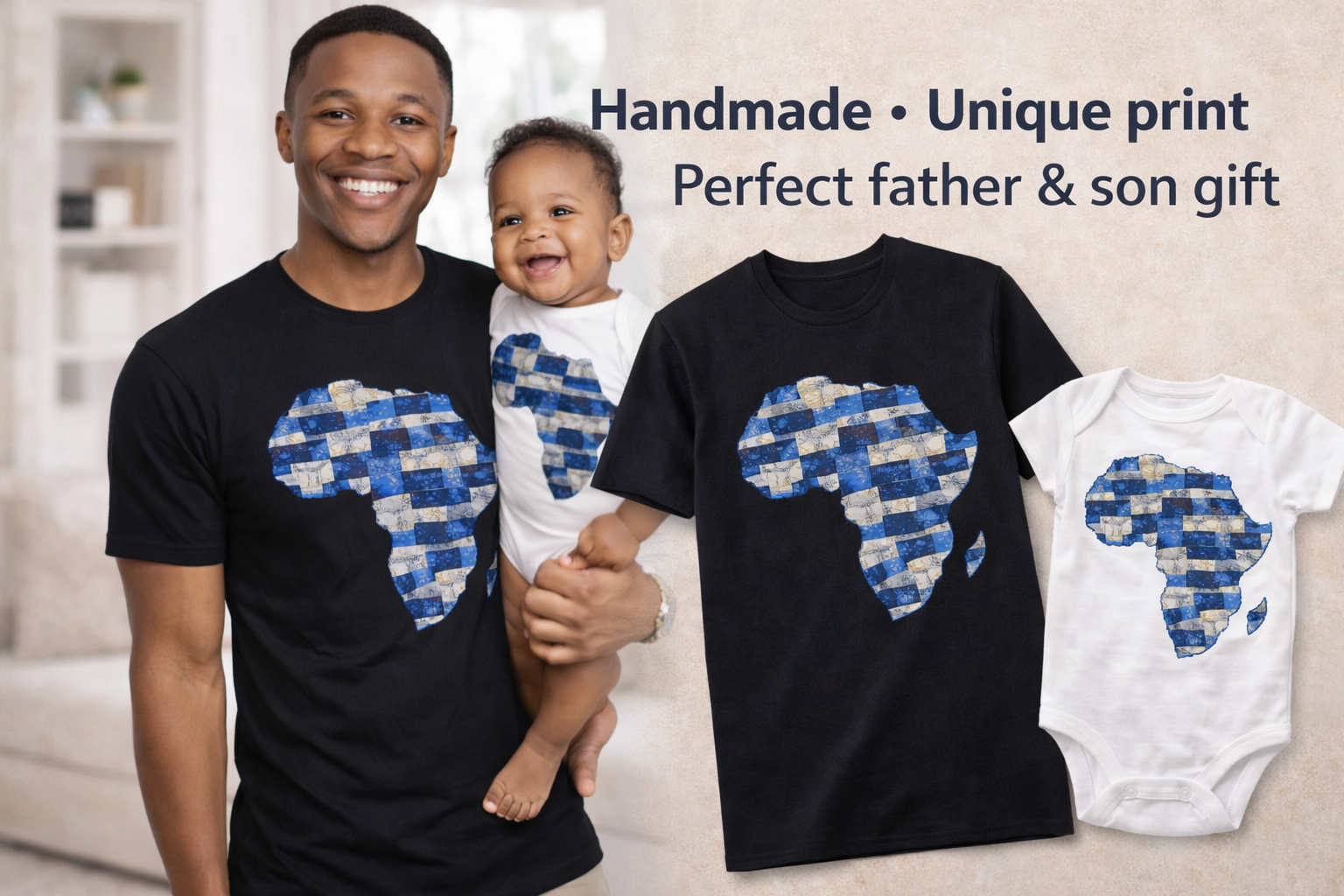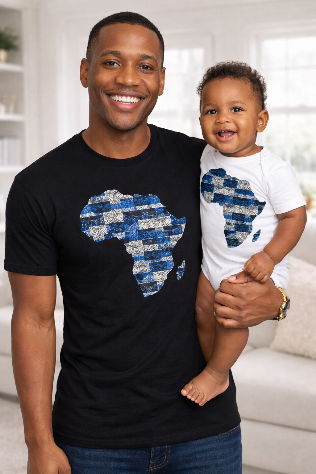 Father & Son Africa Matching Set – African Print T-Shirt & Baby Onesie