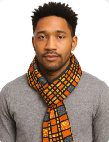 This African-print scarf is designed for everyday wear, blending comfort, warmth, and cultural expression.